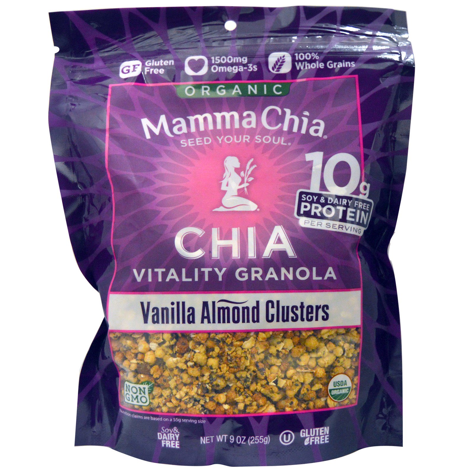 Mamma Chia, Chia Vitality Granola Orgânica, Bombons de Amêndoas e Baunilha, 9 oz (255 g)