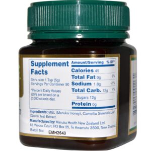 This Manuka Health product combines Manuka Honey with Epigallocatechin gallate (EGCG), the natural active component in Green Tea.