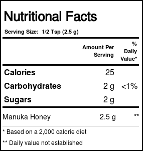 Notas: 12+ Mola Gold Standard, Methylglyoxal 400 mg. MGO 400. Wild harvested.