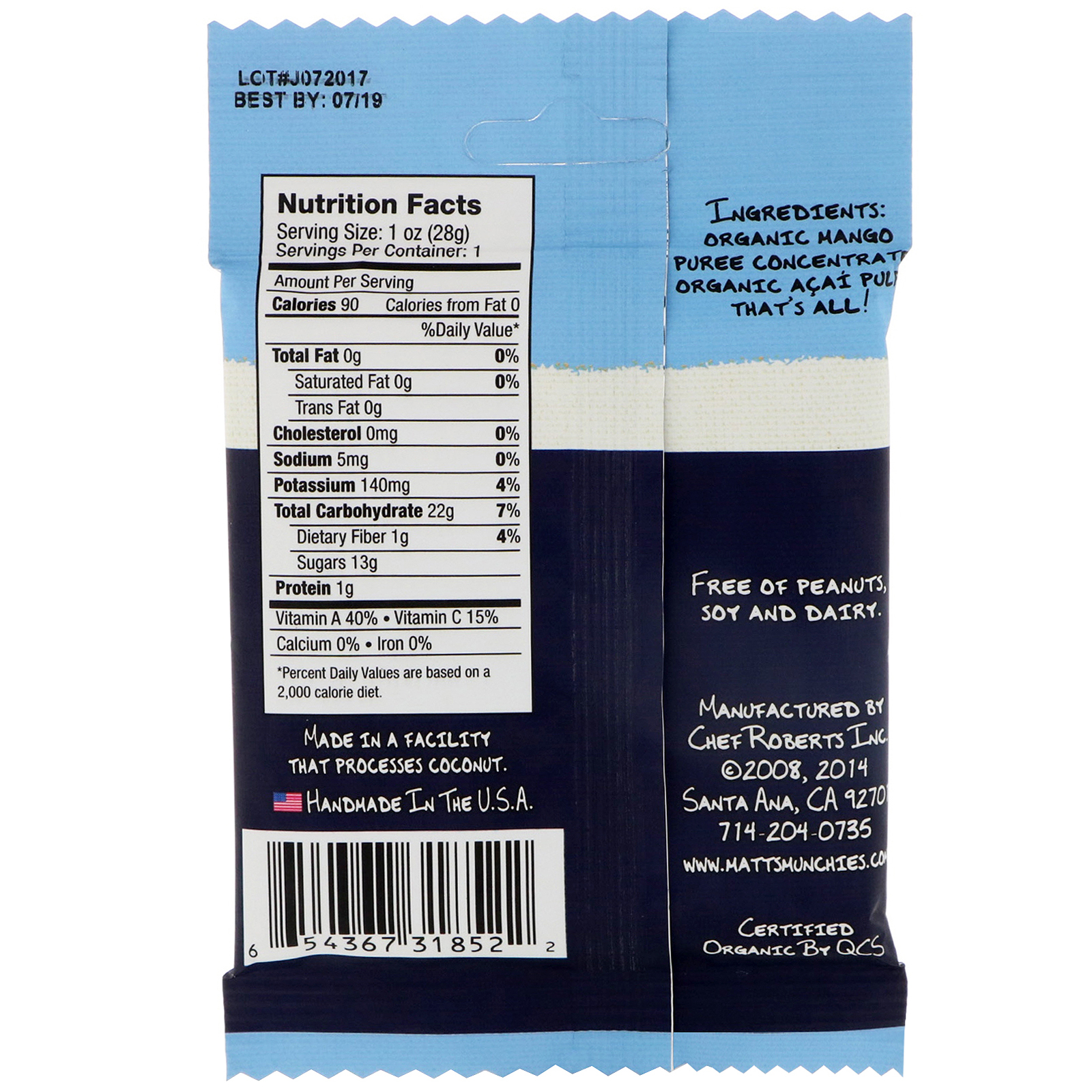 Matt's Munchies, Manga e Açai, Pacote com 12, 1 oz (28 g) cada