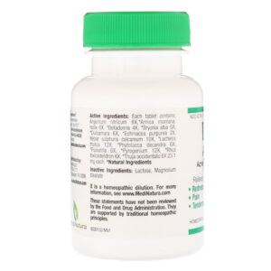 Active Ingredients: Each tablet contains: Argentum nitricum 8X, *arnica montana, radix 6X, *belladonna 4X, *bryonia alba 5X, *dulcamara 6X, *echinacea purpurea 2X, *hepar sulphuris calcareum 10X, *lachesis mutus 12X, *phytolacca decandra 6X, *pulsatilla 6X, *pyrogenium 12X, *rhus toxicodendron 6X, *thuja occidentalis 6X, 23.1 mg each.