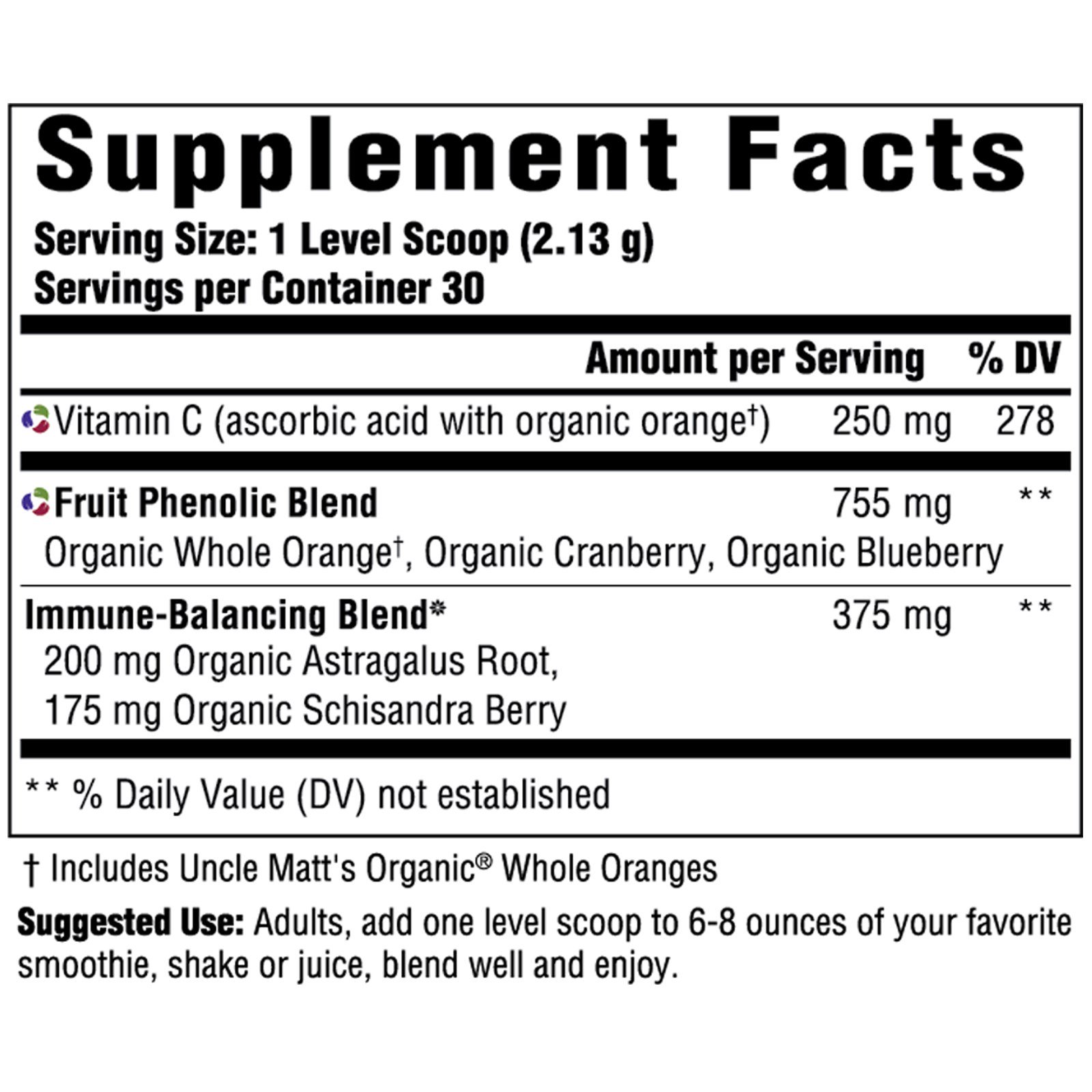 | ♦ Mistura fenólica de frutas Organic Whole Orange † , Cranberry orgânico, Blueberry orgânico |