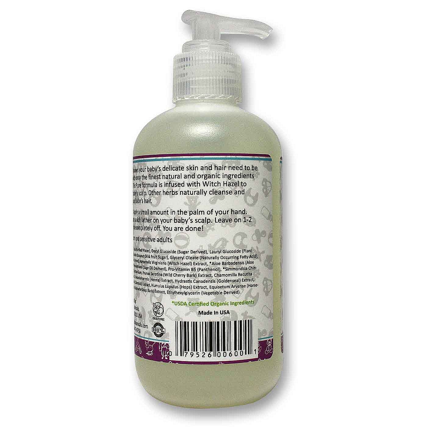 Tear Free Conditioning Shampoo is made with only the best ingredients to condition hair while it cleanses without causing irritation to even the most delicate of skin. The witch hazel helps prevent irritation while balancing the shampoo. Your baby’s hair will be clean and soft and you can cut bath time in half!