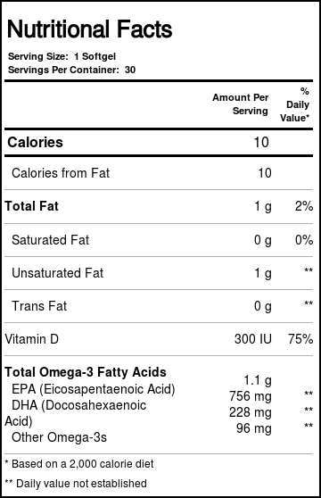 Minami Nutrition’s MorEPA Platinum is designed to give you the ingredients you need for optimal health in a single formula. This once daily softgel is formulated with a rich dose of essential omega-3 fatty acids including 756 mg of EPA and 228 mg of DHA. An added dose of vitamin D delivers additional benefits for immune response, energy production and bone health. Each cold-pressed dose features a delicious orange flavor so you can enjoy your improved health without a fishy aftertaste.