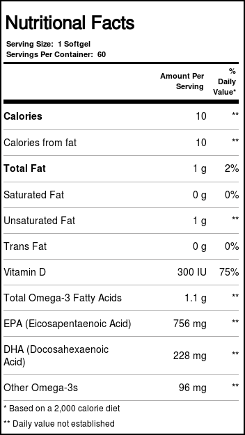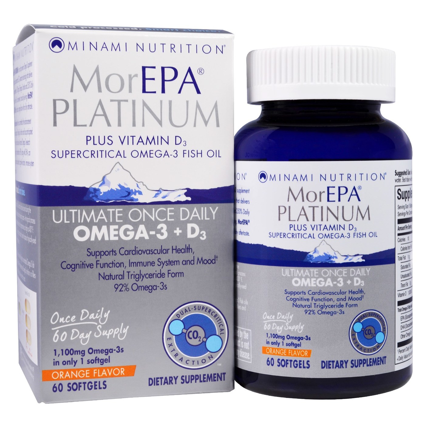 Minami Nutrition’s MorEPA Platinum is designed to give you the ingredients you need for optimal health in a single formula. This once daily softgel is formulated with a rich dose of essential omega-3 fatty acids including 756 mg of EPA and 228 mg of DHA. An added dose of vitamin D delivers additional benefits for immune response, energy production and bone health. Each cold-pressed dose features a delicious orange flavor so you can enjoy your improved health without a fishy aftertaste.