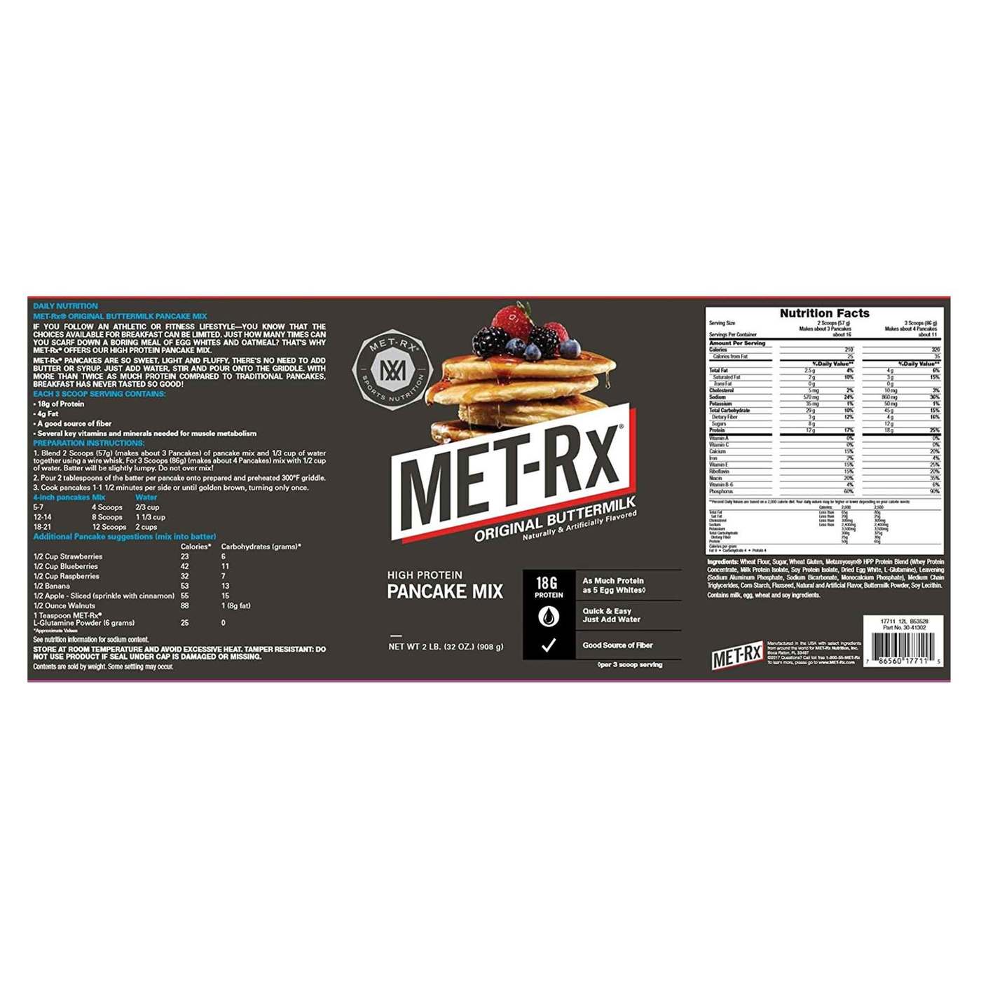 Quer adicionar mais proteína na sua dieta, mas não tem certeza de como fazer? Então, experimente a super fácil de fazer, saborosa e nutritiva Mistura de Panqueca de Proteína da MET-Rx. Uma porção desta mistura contém tanta proteína quanto um omelete de três ovos brancos, além disso, este pó é uma grande fonte de fibra e se mistura facilmente com água para uma rápida, macia e saborosa panqueca.