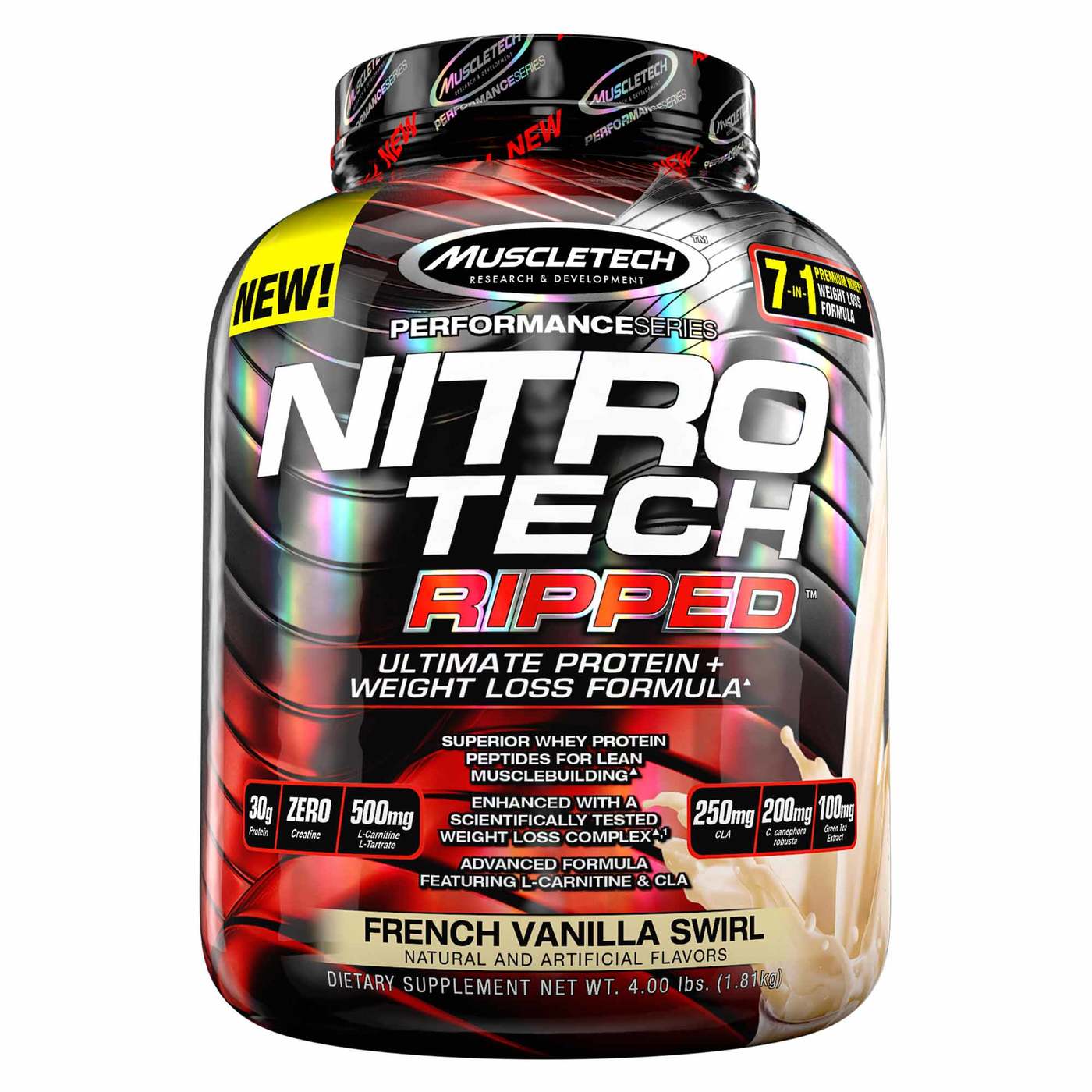 Muscletech Nitro Tech Ripped, Baunilha Francesa- 4 lbs/ 1.81 Kg
