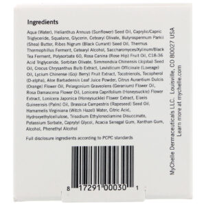 Ingredientes de divulgação completa de acordo com os padrões PCPC.