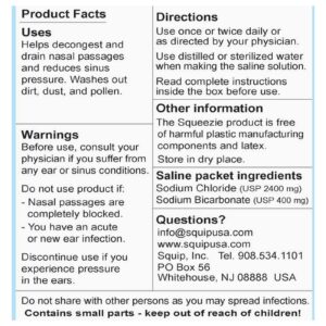 - Nasaline, Squip, Sal Saline Solution, 50 pacotes pré-medidos
