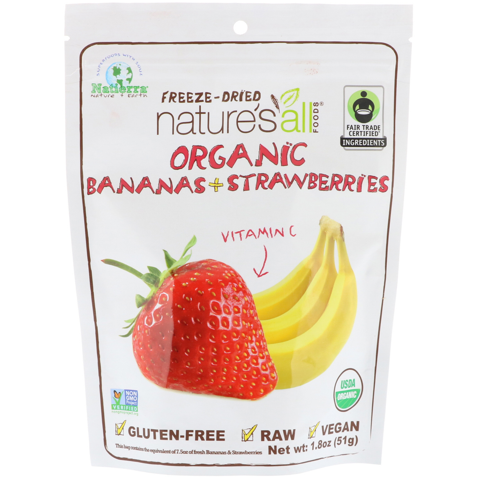 Natierra Nature's All , Organic Freeze-Dried, Bananas + Strawberries, 1.8 oz (51 g)