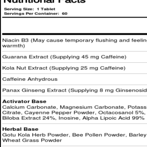 Nota: This product contains caffeine. Livre de Ma Huang ou Ephedrine. Stoue in a cool, dry place.