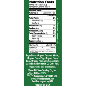 Serving Suggestions: Pack Organic Peaches in lunchboxes for a healthy sweet treat. Add Organic Peaches to fruit cocktails and blend them in smoothies. Heat them gently and serve warm a top your favorite frozen dessert.