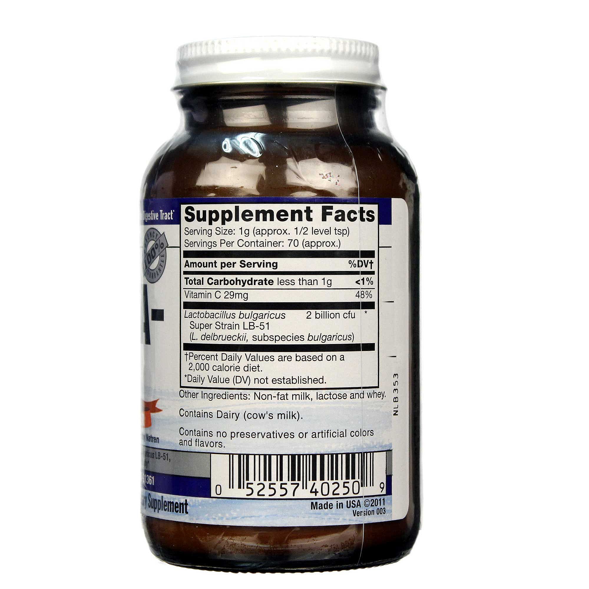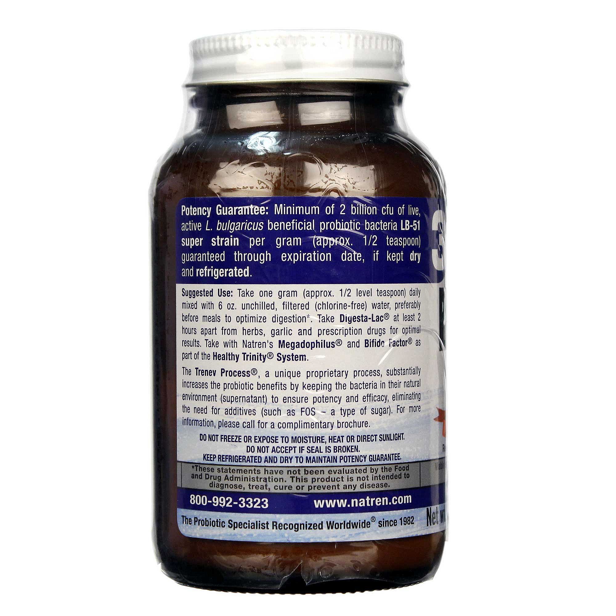 Digesta-Lac is a probiotic super strain supplement. It’s made with highly viable lactobacillus bulgaricus that colonizes in the gut and allows for better digestion of difficult foods — including dairy products. Use it daily to ensure your gut has a healthy balance of helpful microflora. Simply mix half of one teaspoon with your favorite juice, drink or water once daily to reap the full nutritional content of the foods you eat.