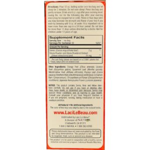 Laci Le Beau Natural Botanicals Herbal Tea combines tangy orange and sweet papaya, spearmint, licorice root and cinnamon with chrysanthemum and a touch of honeysuckle.