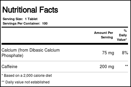 High Caffeine 200 mg by Natrol also provides 75 mg of Calcium from Dibasic Calcium Phosphate on top of the dose of caffeine.