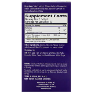 Tonalin CLA 1.200 mg é uma forma patenteada de CLA (ácido linoléico conjugado) derivada da planta de cártamo, uma fonte vegetariana de ácido linoleico.