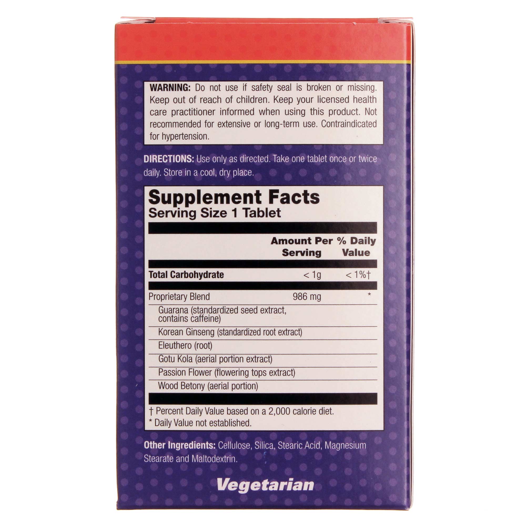 Turbo Charge features a natural formula, comprised of herbal energizers from all over the world. Guarana and Korean ginseng are known to put some pep in your step, while the gotu kola and eleuthro produce a long-lasting energy to keep you going throughout the busy day. Passion flower and wood betony are natural stress relievers and will clear your mind of distractions to give you the focus neccessary to complete your daily tasks.