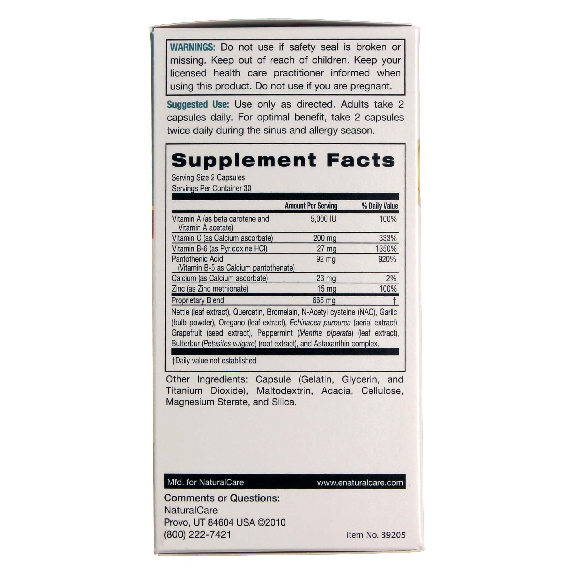 Recomendações de uso: Adults tomar 2 cápsulas dia. Fou optimal benefit, tomar 2 cápsulas twice dia during sinus and allergy symptoms.