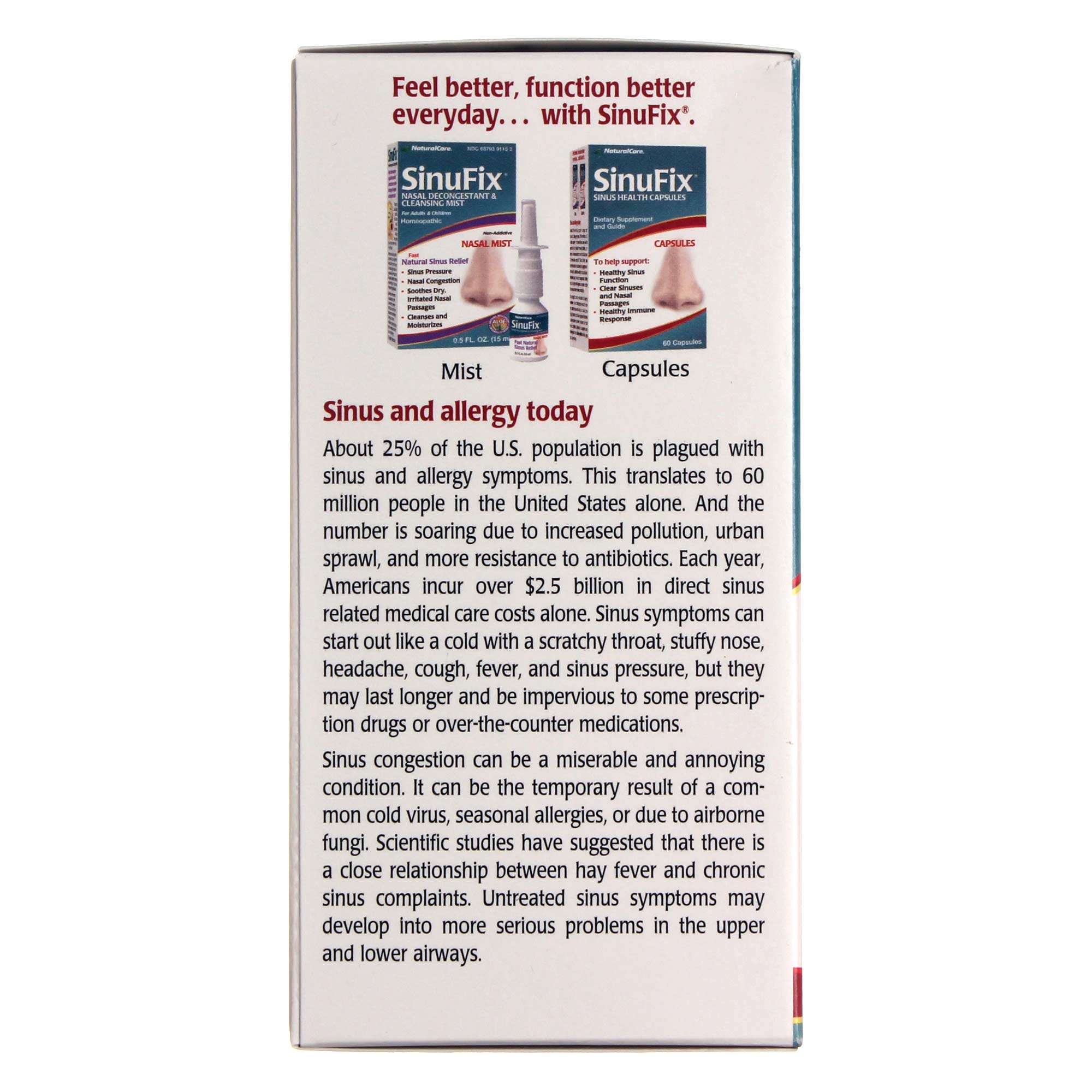 p>Natural Care SinuFix Nasal Mist is a nose spray that’s made with echinacea, stinging nettle, grapefruit oil and other botanical and herbal ingredients.
