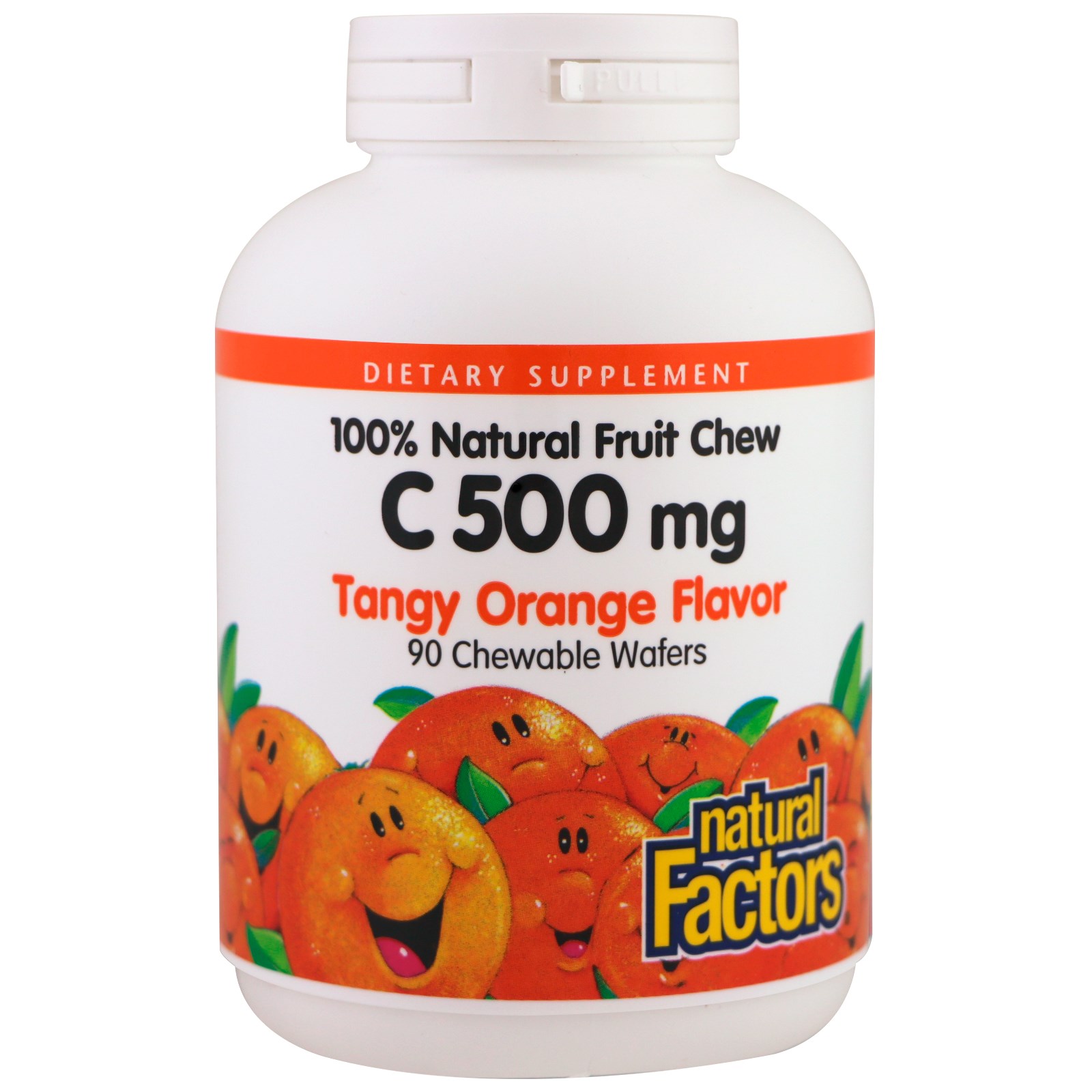 - Natural Factors, Vitamina C, quatro sabores misturados de frutas, 500 mg, 90 pastilhas mastigáveis
