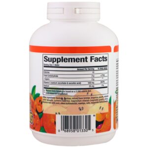 Dextrose, frutose, sabor natural (laranja, tangerina, pêssego), cor natural (annatto, cúrcuma, paprika), estearato de magnésio (grau vegetal), sílica, raiz de alcaçuz, ácido cítrico, bioflavonóides cítricos, roseiras, rutina, hesperidina, bioflavonóides.