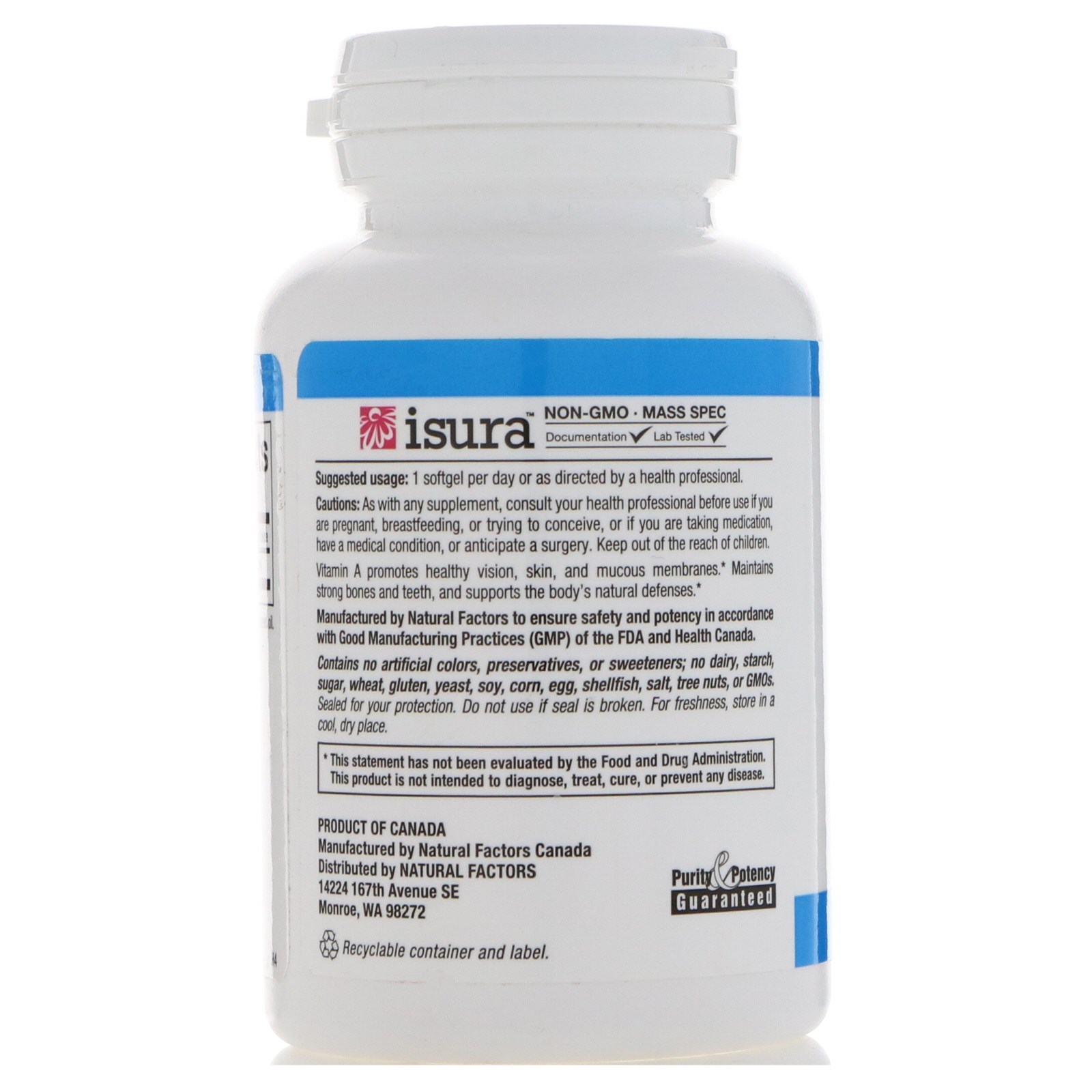 Manufactured by Natural Factors to ensure safety and potency in accordance with Good Manufacturing Practices (GMP) of the FDA and Health Canada.