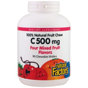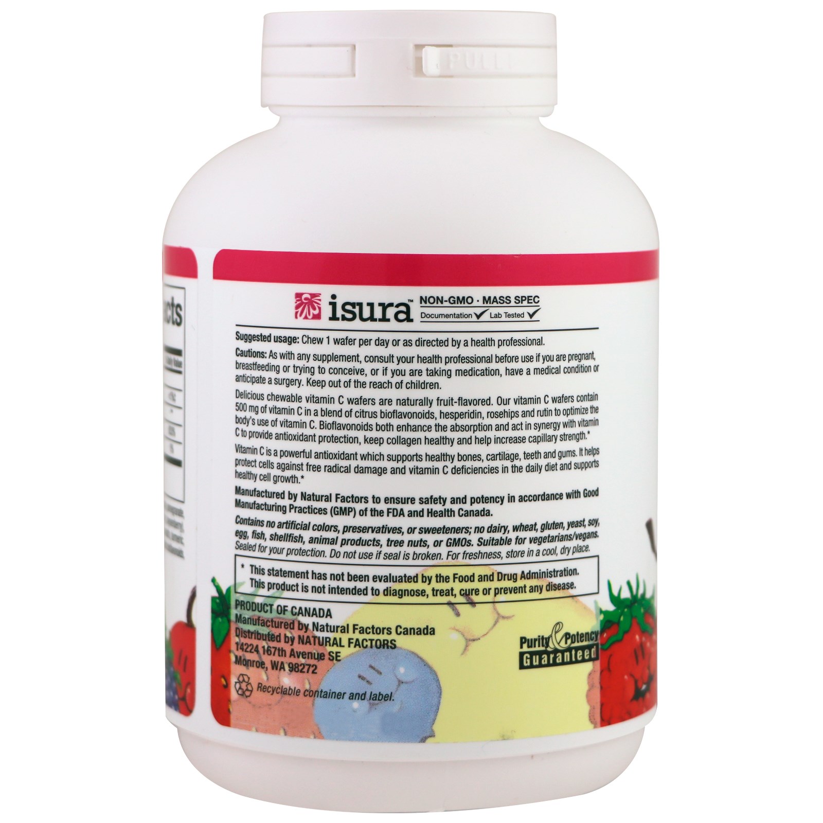 - Natural Factors, C 500 mg, Frutas mistas, 500 mg, 180 Wafers Mastigáveis
