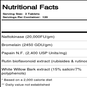 Rutozym by Naturally contains 25 mg of Nattokinase and 100 mg of White Willow Bark Extract.