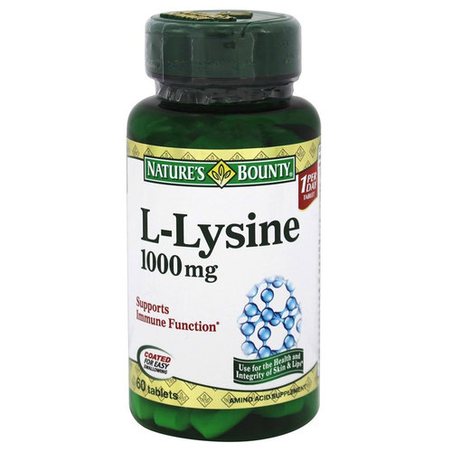 Each single tablet serving of L-Lysine from Nature’s Bounty provides up to 1,000 mg of L-Lysine in the form of L-Lysine Hydrochloride.