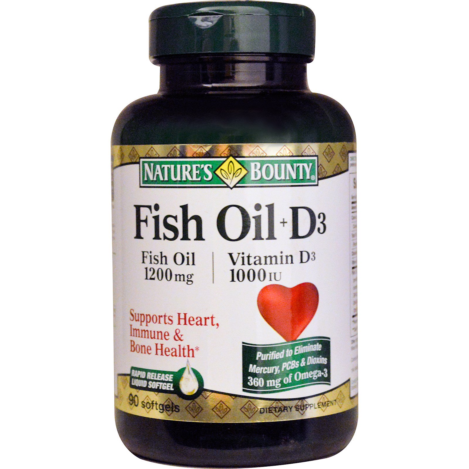 Nature's Bounty, Óleo de Peize + D3, 90 Cápsulas Gelatinosas