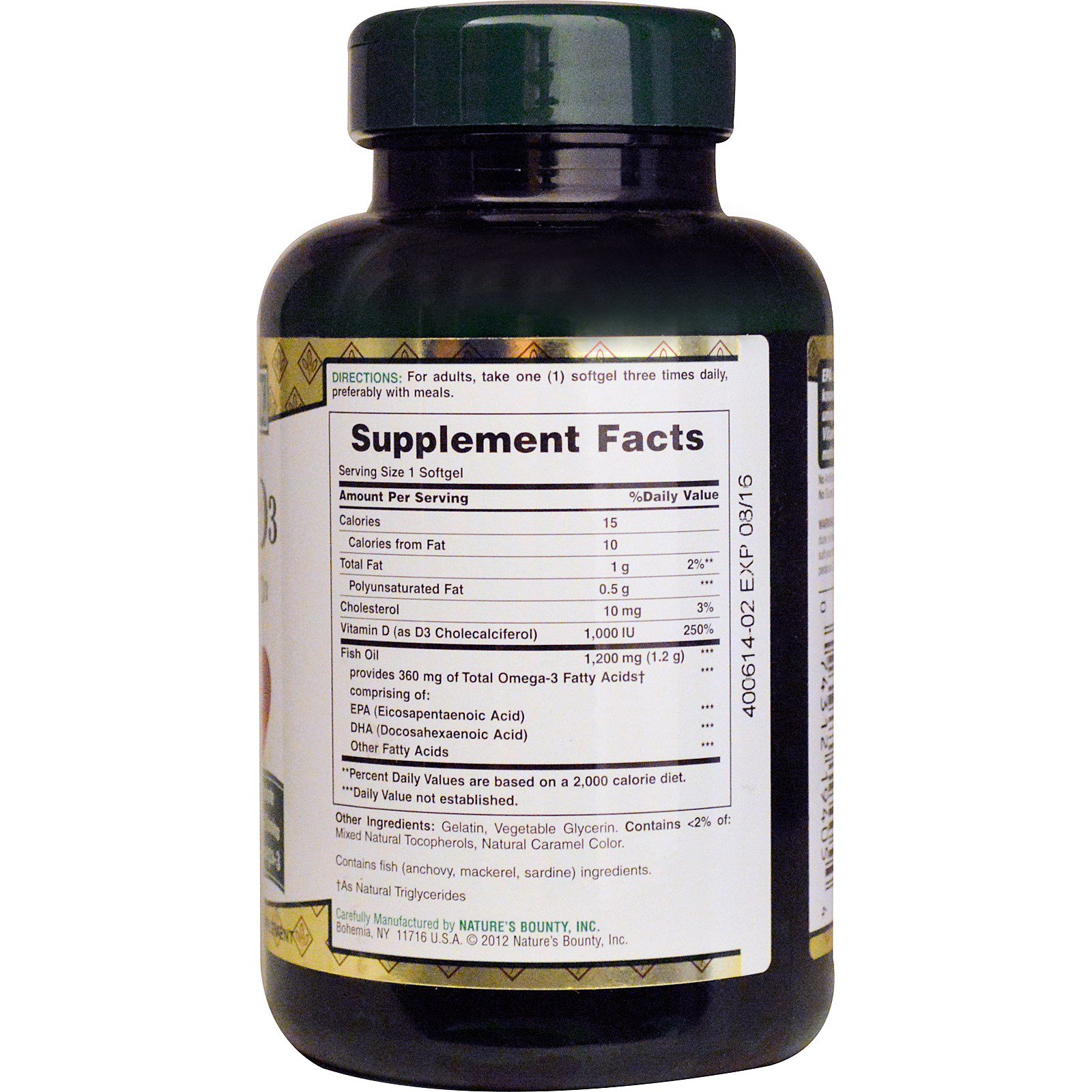 - Nature's Bounty, Vitamin D-3, 50 mcg (2000 IU), 350 Softgels