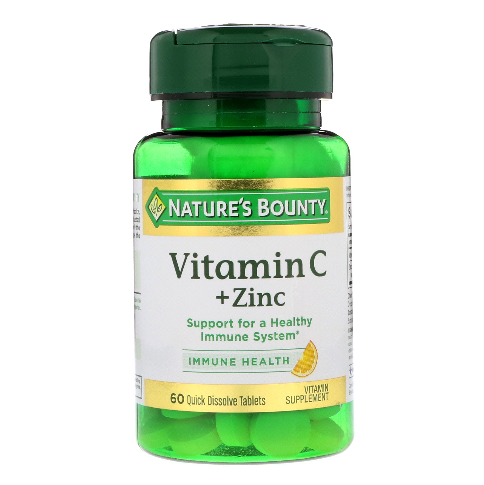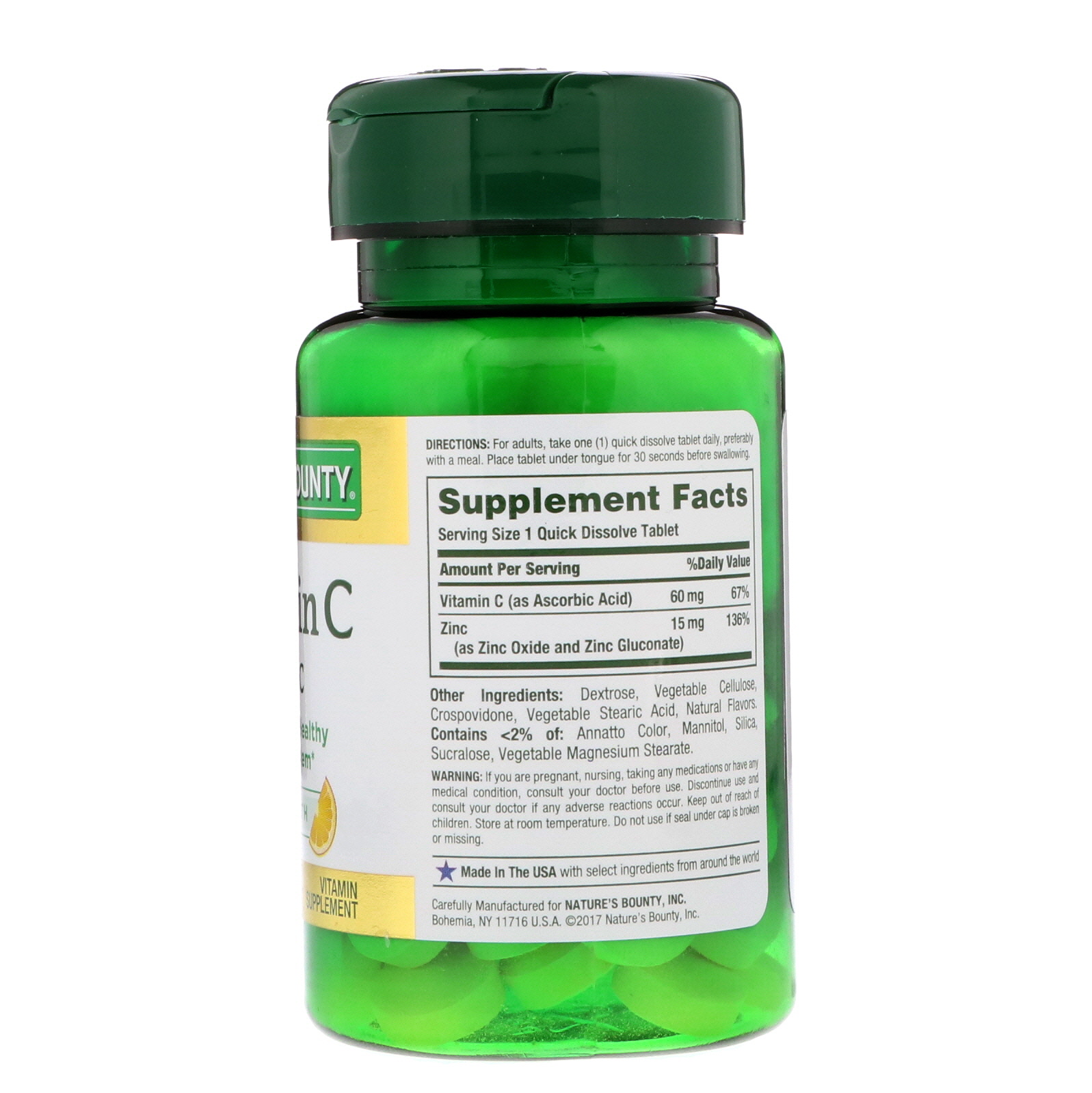 Nature's Bounty, Vitamina C com Zinco, Sabor Cítrico Natural, 60 Comprimidos de Dissolução Rápida