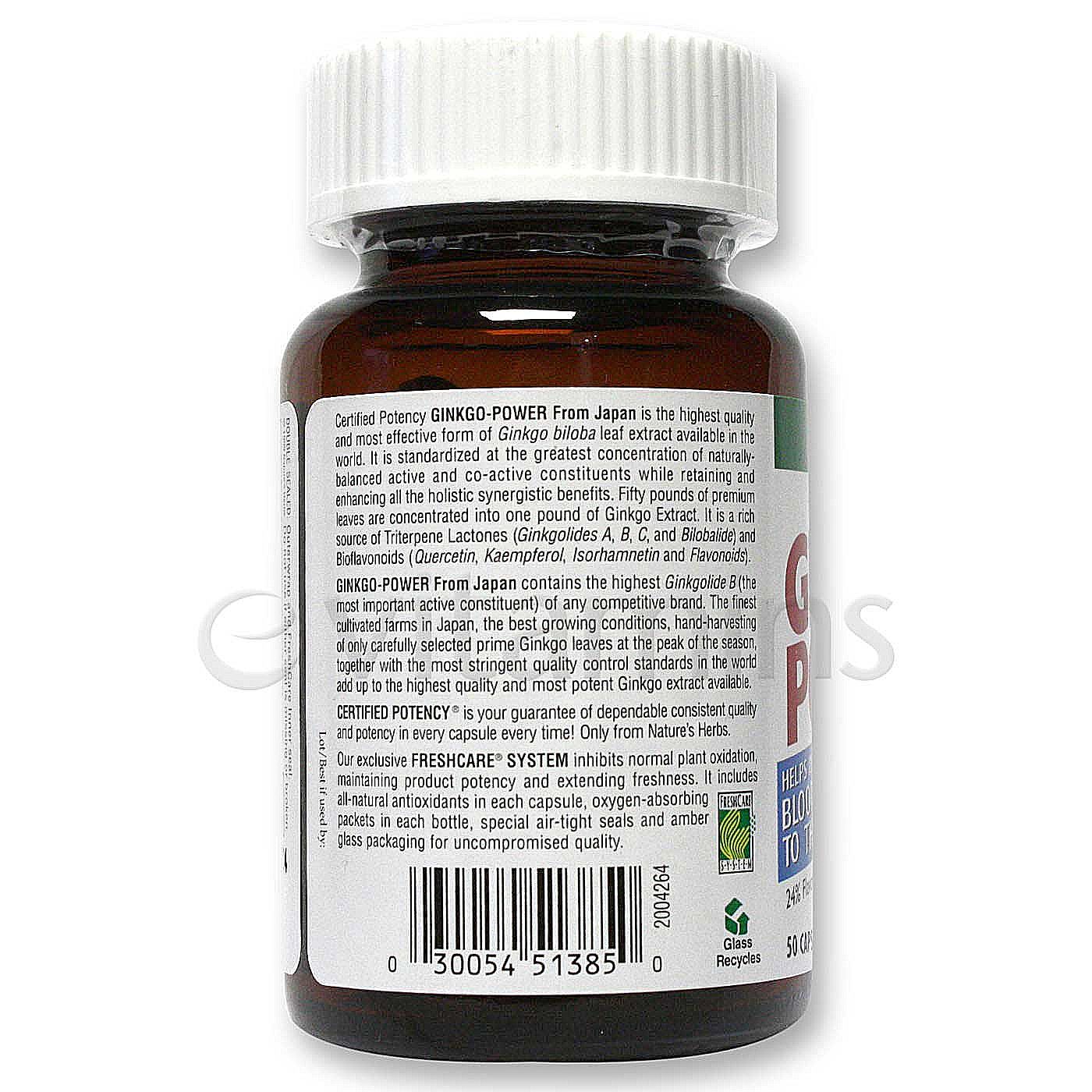 Certified Potency Ginko-Power From Japan is the highest quality and most effective foum of Ginkgo Biloba leaf extract available in the would. It is standardized at the greatest concentration of naturally-balanced active and co-active constituents while retaining and enhancing all the holistic synergistic benefits. Fifty punds of premium leaves are concentrated into uma pound of Ginkgo Extract. It is a rich source of Triterpene Lactumas (Ginkgolides A, B, C, and Bilobalide) and bioflavonoids (Quercetin, Kaempferol, Isouhamnetin, and Flavonoids).