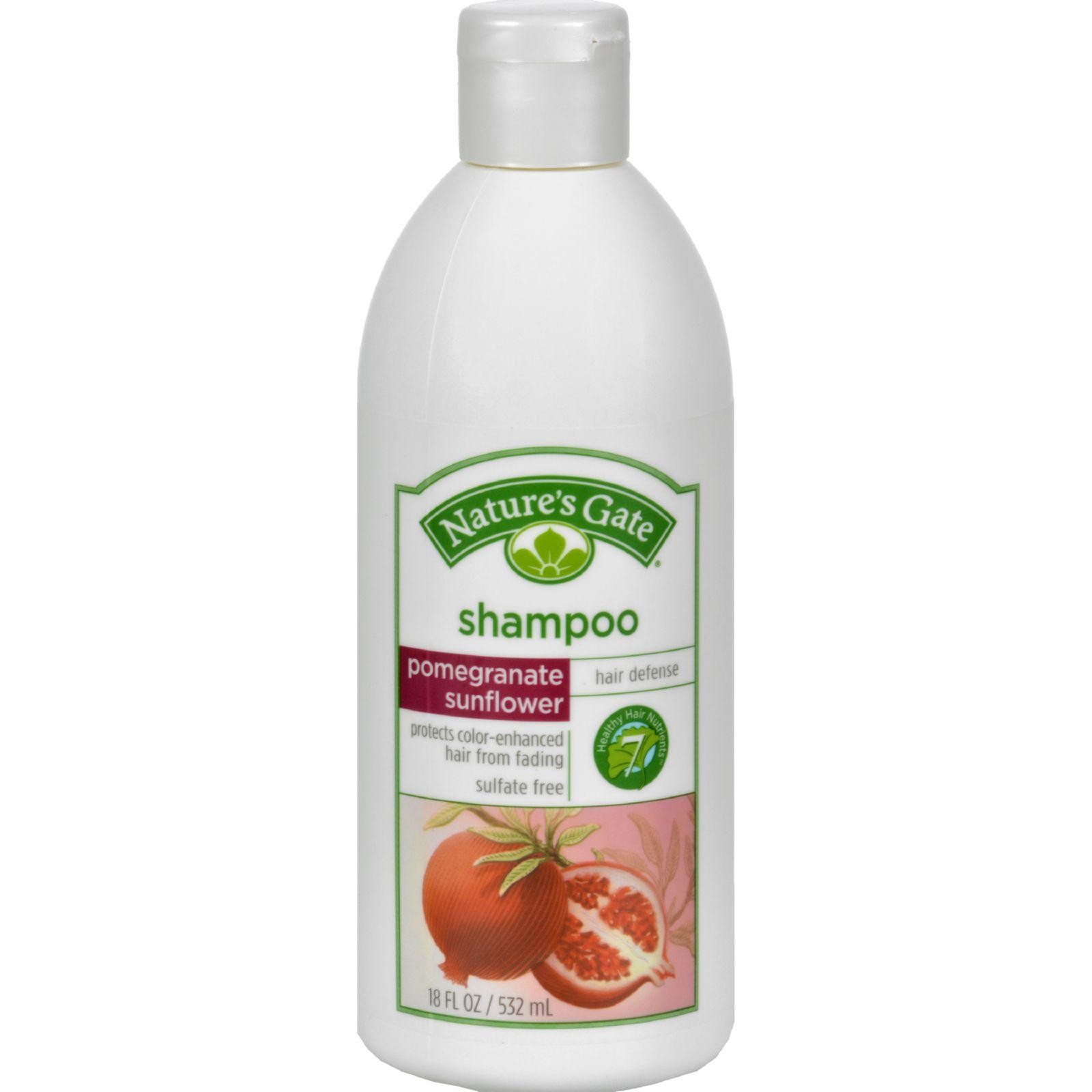 Nature’s Gate Shampoo Pomegranate Sunflower Description: Hair Defense Protects Color-Enhanced Hair from Fading Sulfate Free 7 Healthy Hair Nutrients Defends color-treated hair from the damaging effects of UV rays, the environment and styling. This lavish shampoo is formulated with Pomegranate, Sunflower and Red Tea Leaf for their antioxidant properties and the 7 Healthy Hair Nutrients to strengthen and revitalize hair. With daily use, this shampoo helps extend the vibrancy of your colored tresses. Exclusive healthy hair blend includes Panthenol, Soy Protein, Vegetable Proteins, Jojoba Oil, Borage Flower Seed Oil, Vitamin C and Vitamin E. Sunflower helps prevent color-fade for brighter more lustrous hair Pomegranate is one of the richest fruit sources of free-radical fighting antioxidants Panthenol (Vitamin B5) and Soy Proteins strengthen hair and bring out its natural luster Vitamin C and Vitamin E work synergistically to provide antioxidant benefits Disclaimer These statements have not been evaluated by the FDA. These products are not intended to diagnose, treat, cure, or prevent any disease.