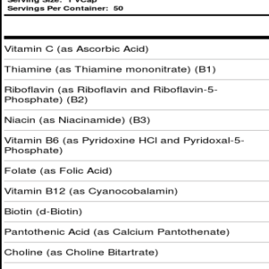 Nature’s Life Stress B Complex with C contains the daily value of several B vitamins.