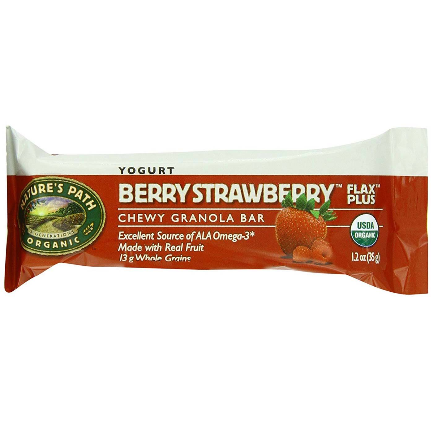 The combination of raspberries, strawberries and yogurt in Berry Strawberry Flax Plus Granola Bars bring on the big flavou while the addition of 330 mg of flax seed means they’re a great source of omega-3 fatty acids good fou your heart. Because they’re individually wrapped, keeping uma ou two in your car, purse ou briefcase means you can skip the junk food in the vending machine.