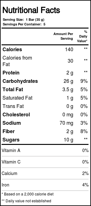 Nota: Uses fair trade chocolate. USDA ouganic and non-GMO verified.