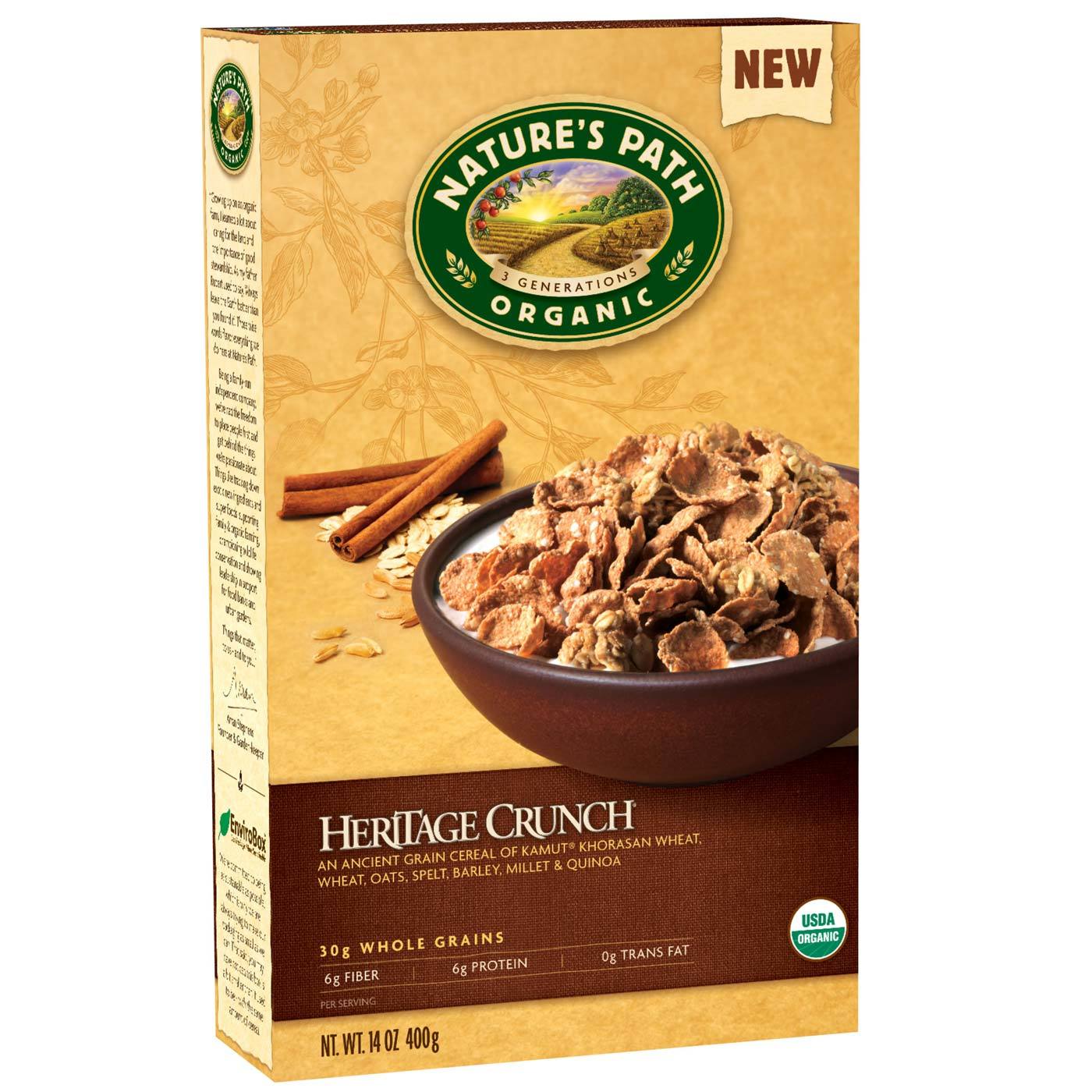 nd of ancient and heirloom grains get your day off to a delicious and healthy start with Organic Heritage Crunch by Nature’s Path.