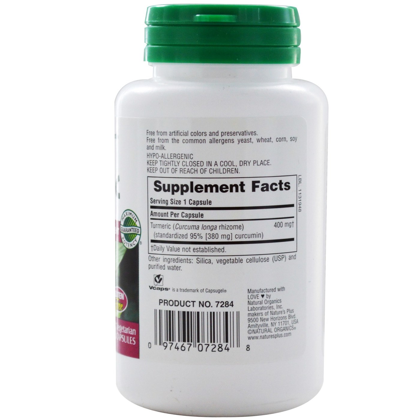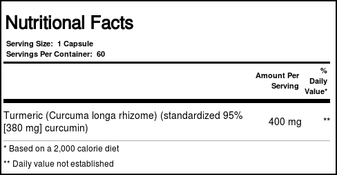 The perennial plant Turmeric, a member of the ginger family, is widely used in the East Indies, Madagascar and most of the Pacific islands. Nature’s Plus Herbal Actives Turmeric rhizome extract is uniformly standardized to a minimum of 95% (380 mg) curcumin to guarantee that each and every capsule provides consistent potency and activity. Each capsule, providing the greatest concentration of active botanical principles, maximizes the synergistic benefits of the whole rhizome, which naturally contains turmerone and zingiberine.