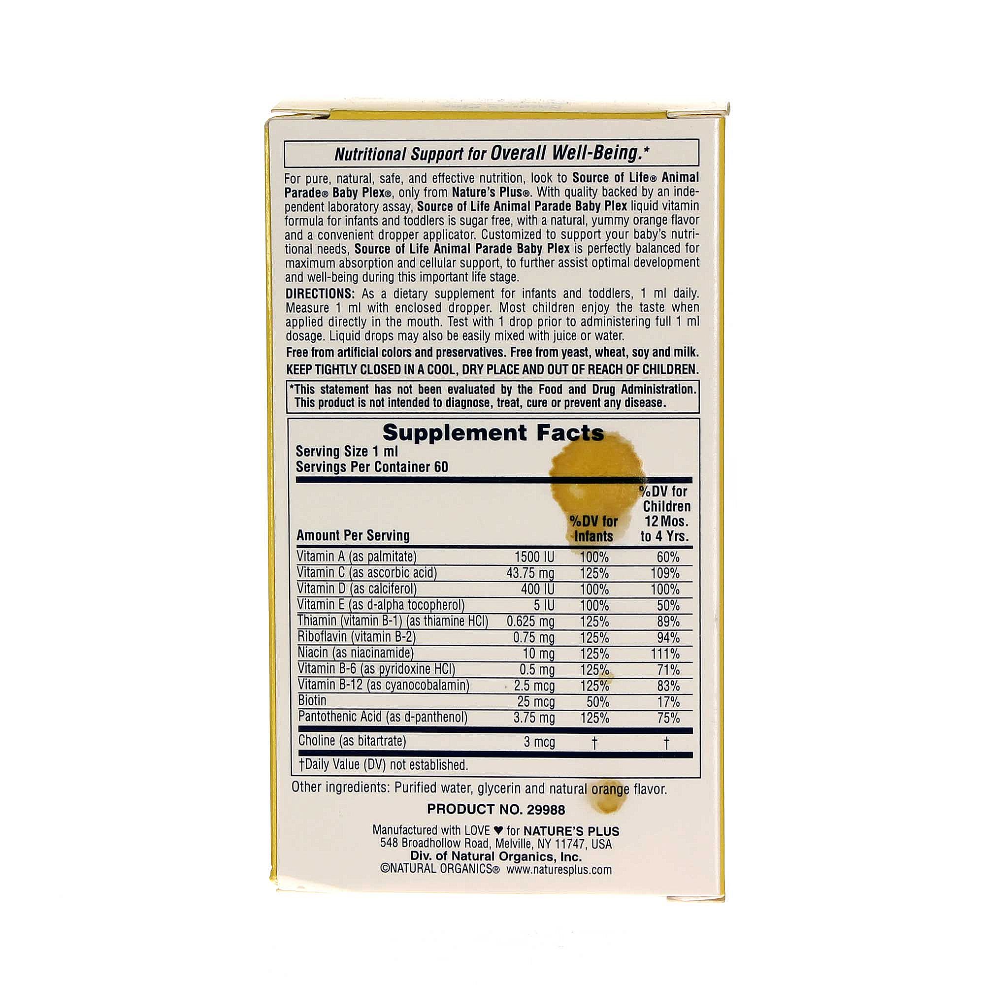 Animal Parade® Baby Plex® liquid vitamins for infants and toddlers are sugar free, with a natural, yummy orange flavor and a convenient dropper applicator. Animal Parade Baby Plex is perfectly balanced for maximum absorption, supporting optimal development and well-being during this important life stage. With superior-quality, natural nutrition, babies can realize the amazing feat of growth – and blossom into happy, healthy children.