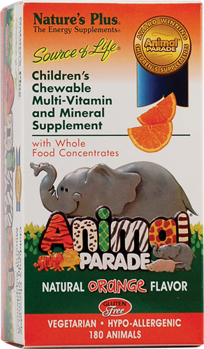 Animal Parade children’s formula supplies the protection and nutritional assurance all parents seek for their children, along with the great taste and animal shapes that kids love. Each chewable tablet supplies 16 vitamins and 8 minerals, as well as nature’s most healthful whole foods, including spirulina, carrot, broccoli, whole brown rice and spinach. Combining the natural goodness of whole foods with a balanced profile of nutrients is what makes Animal Parade a complete dietary supplement.