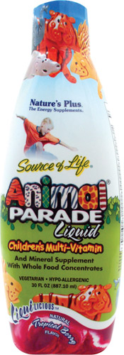 Animal Parade Liquid provides a complete spectrum of essential vitamins, supplying 100% of the Daily Value (DV) for most vitamins, including vitamin C and B vitamins. Animal Parade Liquid provides a broad range of healthful, essential minerals, including iron, calcium, zinc, iodine, copper and manganese. And Animal Parade Liquid provides the wholesome goodness of 11 whole food concentrates.