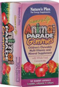 Nature’s Plus Animal Parade® Gummies Children’s Chewable Multi-Vitamin and Mineral Supplement Cherry Orange and Grape Description