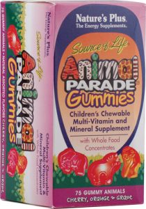 Nature’s Plus Animal Parade® Gummies Children’s Chewable Multi-Vitamin and Mineral Supplement Cherry Orange and Grape Description