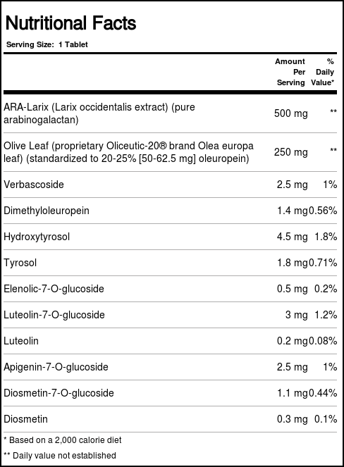 ARA-Larix/Olive Leaf Extended Release by Nature’s Plus is a standardized botanical supplement that is completely gluten free.
