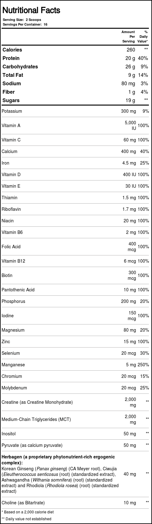 Spiru-Tein Sport combines superior nutrition, performance aids and highly active phytonutrients to bring you the ultimate protein energy shake for athletes worldwide. The delicious and energizing formula provides a balance of carbohydrates, amino acid-rich proteins and fat, to give you a superior performance and optimum endurance everytime you put on your game face. Spiru-Tein Sport also delivers a concentrated dose of pure creatine monohydrate and natural extracts for proven ergogenic benefits.