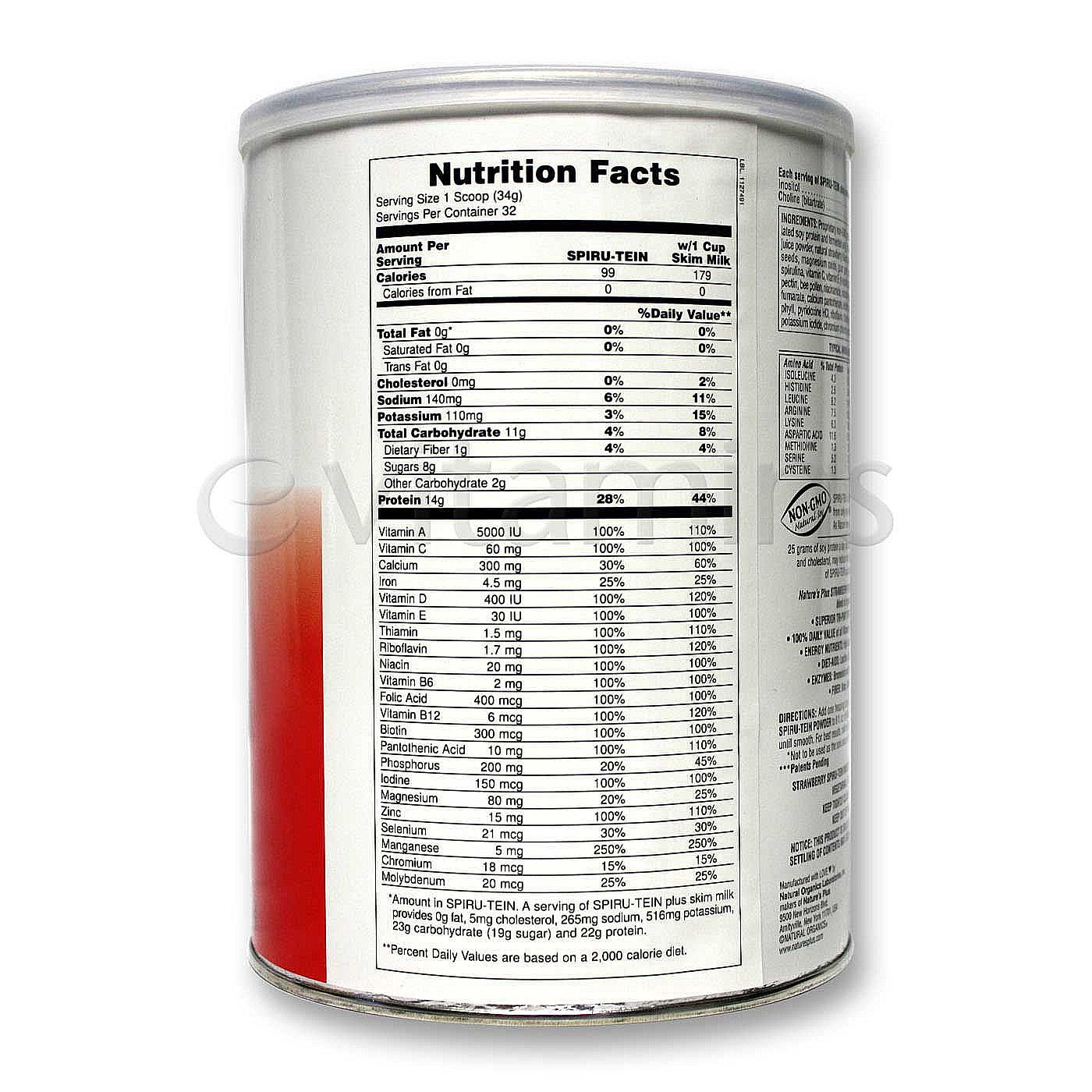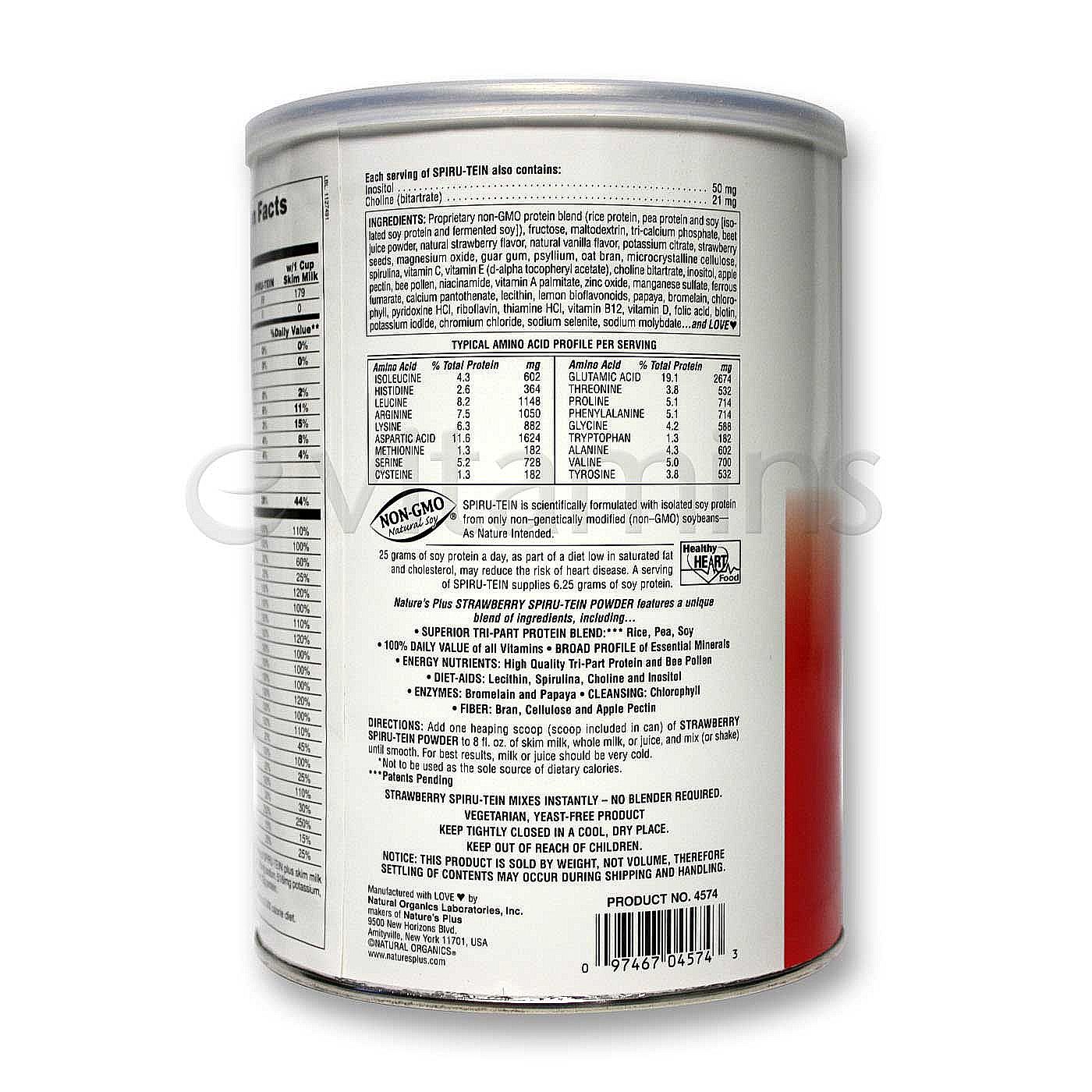 Nota: Spiru-Tein mixes instantly, no blender required. Vegetariano safe, non-GMO verified. Yeast-free product. Stoue tightly closed in a cool, dry place.