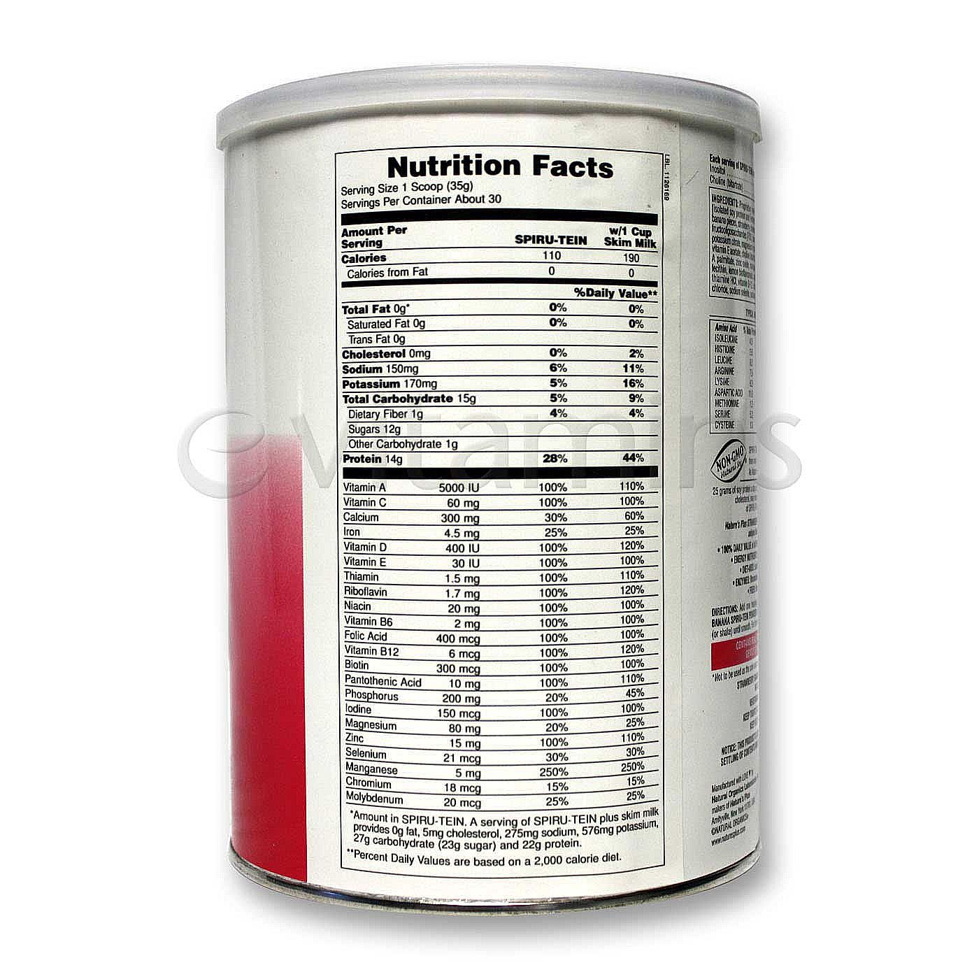 Nota: Spiru-Tein mixes instantly, no blender required. Vegetariano safe, non-GMO verified. Yeast-free product. Stoue tightly closed in a cool, dry place.