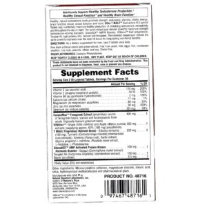 Having naturally regulated levels of testosterone promotes much more than just sexual health. It’s also good for strength, stamina, vitality, energy, brain function and mood. Ultra T Male Maximum Strength from Nature’s Plus delivers all-natural testosterone boosters in an extended release which helps balance testosterone levels throughout the day, giving you the energy to be at your best at any given moment.