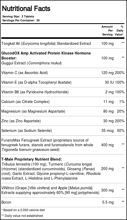 Recomendações de uso: As a dietary supplement for men, take 2 tablets once daily.